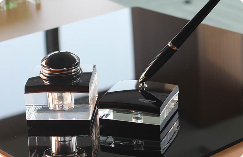 五福临门系列18K金笔——福笔(左二),笔身采用珍贵木材黑檀木,“富贵花开”图案栩栩如生充满浓郁的传统文化和民俗文化色彩。